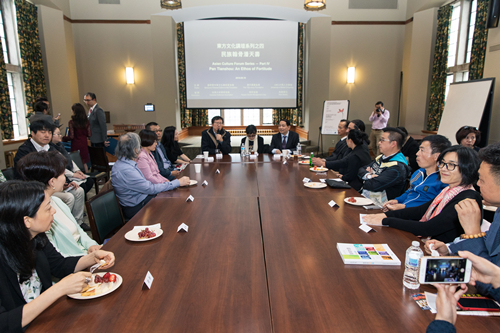頒獎典禮后東方文化講壇同時舉行,由潘天壽基金會會長勵國儀主講:民族翰骨潘天壽。這是在UBC大學(xué)舉辦的第四屆東方文化講壇,講壇曾先后邀請了世界美術(shù)學(xué)院院長聯(lián)盟主席潘公愷,世界華語詩壇泰斗洛夫,溫哥華美術(shù)館亞洲館總監(jiān)鄭勝天,著名中醫(yī)師卓同年分別作了主題演講。
