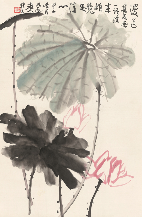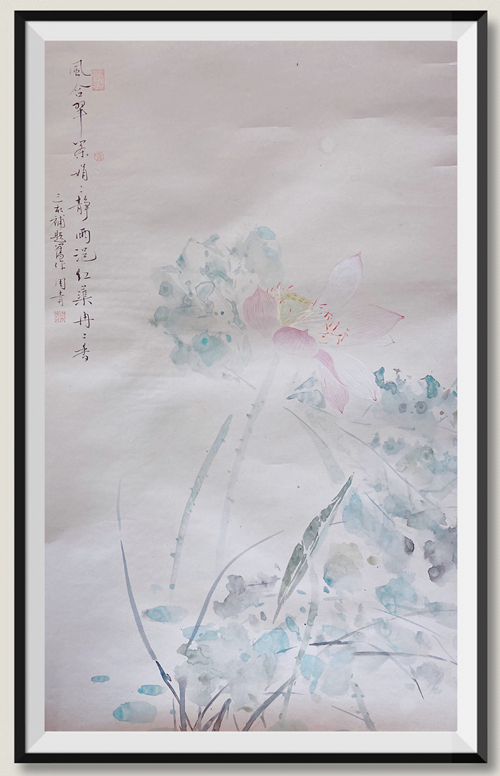 ▌周 青《雨裛紅蕖冉冉香》69 × 42 cm
