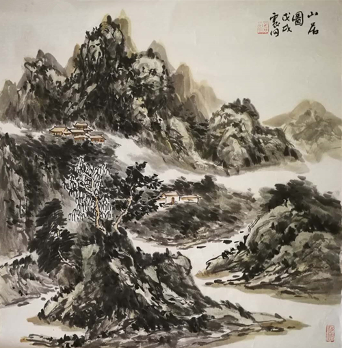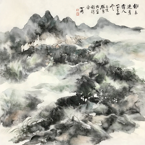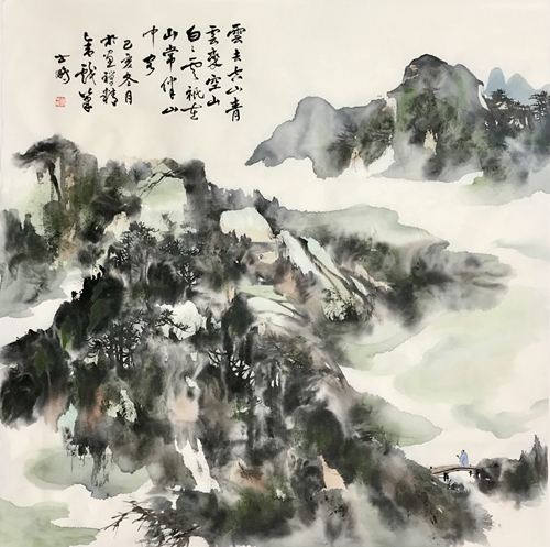 ▌胡世鵬《云山幽隱》68 × 68 cm