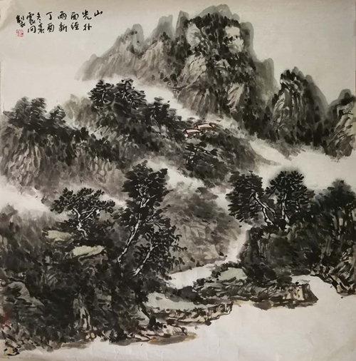 ▌褚震岡《山光撲面經雨新》68 × 68 cm