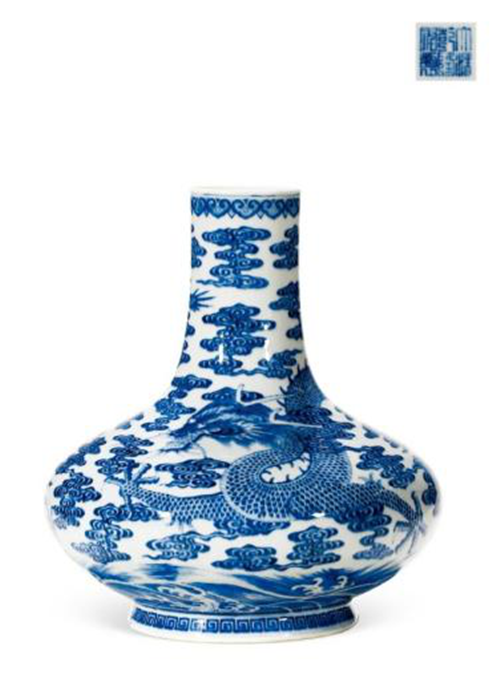 清乾隆·青花蒼龍教子圖荸薺瓶