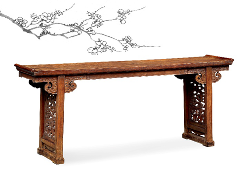 明末清初·黃花梨獨板夾頭榫帶托螭龍紋翹頭供案
