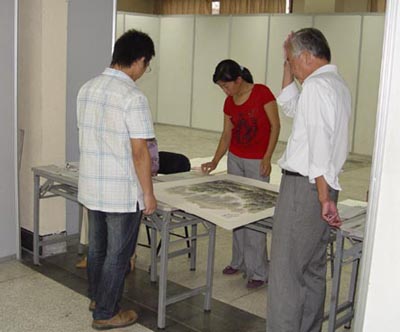 本站訊 2006秋季“藏畫于民”聯(lián)誼活動于9月30日下午在浙江圖書館拉下帷幕。此次活動參與者眾多,尤其是許多外地朋友專程趕來杭州,就為一試運氣。如第一個上來摸獎的朋友就是從紹興特地趕來,他的運氣真還不錯,一摸就摸中了中國美院國畫系山水教研室主任張偉平教授的一幅《秋林獨步圖》。摸獎活動快接近尾聲時,一位只購買了一張摸畫券的女士,竟一舉摸中了001號陽太陽的《春雨》圖,真是非常的幸運,活動氣氛也由此達到了高潮。許多精彩作品都被幸運者紛紛摸走。