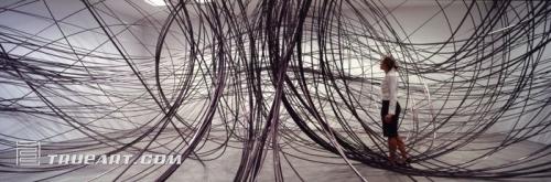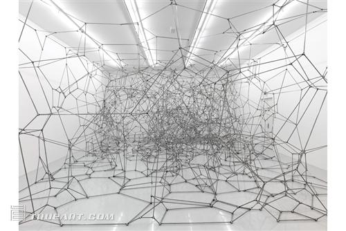 作品“蒼穹III(2009)”呈不規(guī)則的三位立體網(wǎng)狀的人形結(jié)構(gòu),尺寸約為真人的10余倍大小。在敞開式的博物館中,作品將暴露于四季的陽光照射下,同時(shí)博物館還將定期邀請參觀者,依據(jù)他所提供的最佳觀展角度,適時(shí)的調(diào)整作品的展示方式。