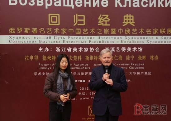 2013年4月20日,“回歸經(jīng)典——俄羅斯著名油畫家中國(guó)藝術(shù)之旅暨中俄油畫名家聯(lián)展”在西溪藝得美術(shù)館隆重開幕。開幕式盛況空前,俄羅斯聯(lián)邦駐上??傤I(lǐng)事館副總領(lǐng)事巴甫洛夫先生及副總領(lǐng)事錢金先生、浙江省委宣傳部副部長(zhǎng)來穎杰先生、浙江省文學(xué)與藝術(shù)聯(lián)合會(huì)黨組書記高克明先生、浙江省委省政府接待辦副主任沈堅(jiān)先生、浙江油畫協(xié)會(huì)主席楊參軍先生、浙江美術(shù)家協(xié)會(huì)主席潘鴻海先生以及政界、商界、學(xué)界的代表100余人參加了開幕式。