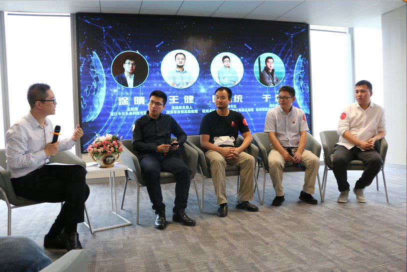 柏融副總于昊作為江干區(qū)金融企業(yè)代表受邀參與座談環(huán)節(jié),與新媒體行業(yè)代表《今日頭條》浙江分部總經(jīng)理涂晴、“互聯(lián)網(wǎng)+醫(yī)療”行業(yè)代表卓建科技副總裁葉建統(tǒng)、電子商務(wù)行業(yè)代表貝貝集團(tuán)公共事務(wù)部經(jīng)理王健,就黨建與企業(yè)發(fā)展的融合議題進(jìn)行了討論。