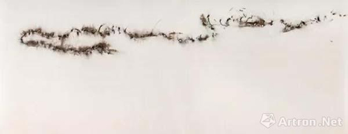 《冊(cè)頁(yè)-4》創(chuàng)作于2009年,畫(huà)面追求筆墨感覺(jué),山巒、樹(shù)枝、亭閣被片段化的解構(gòu)成符號(hào),尚揚(yáng)故意打破了物與物之間的關(guān)系,將這些碎片化的符號(hào)放置在灰蒙蒙的墨色云氣中。尚揚(yáng)在作品中探討了自然、生活、藝術(shù)這三者在今天同時(shí)發(fā)生的變化,并將話(huà)題擴(kuò)展到中國(guó)繪畫(huà)在當(dāng)代文化語(yǔ)境之下尋求建構(gòu)當(dāng)代價(jià)值的新的可能性,以及中國(guó)當(dāng)代藝術(shù)的現(xiàn)代轉(zhuǎn)型乃至創(chuàng)新和邊界等一系列問(wèn)題??梢哉f(shuō),尚揚(yáng)的個(gè)案為中國(guó)當(dāng)代藝術(shù)的轉(zhuǎn)化提供了一種視覺(jué)樣本的參照。
