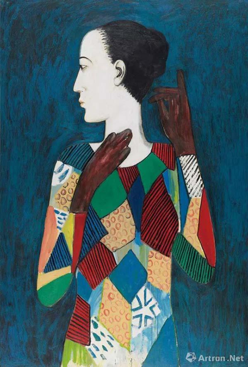 邱亞才以描繪肖像聞名,使用中國(guó)傳統(tǒng)的白描技法,將他長(zhǎng)期對(duì)于生命和現(xiàn)實(shí)的體察投射于畫(huà)布?!赌L貎骸穭?chuàng)作于1993年,畫(huà)中的女模特兒身穿由條紋和幾何圖案色塊組合而成的鮮艷衣裳,是畫(huà)家作品中少見(jiàn)的豐富色彩。邱亞才曾在他的自述與小說(shuō)中,清楚描寫(xiě)了內(nèi)心對(duì)女性糾結(jié)而復(fù)雜的情感,《模特兒》更不同于以往作品冷靜而疏離的描寫(xiě),畫(huà)面中對(duì)于細(xì)節(jié)的處理,在在指出藝術(shù)家對(duì)此作的重視程度,人物描繪的反差更影射了藝術(shù)家所隱藏的內(nèi)在情緒,揭示邱亞才最為深刻的情感面向。