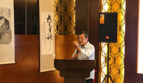 著名書畫家 、美術(shù)理論家,國畫大師劉知白關(guān)門弟子巢岡先生作主題演講。他的題目是“中國山水畫意境初探”。