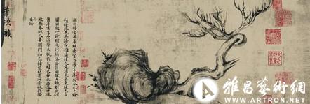 在形形色色文人繪畫行為中,可以看到書法藝術(shù)修養(yǎng)作為大多數(shù)文人畫家審美感受能力的一個(gè)重要組成部分,或明或暗地推動(dòng)著獨(dú)立意識(shí)日趨彰顯的文人畫對(duì)于自身形式法則的探索與建構(gòu)。這種建構(gòu)改變著繪畫的自律活動(dòng),使之弱化造型的客觀指向性,而強(qiáng)化線跡鋪排和筆墨構(gòu)成為中心的形式趣味,為文人們的精神演繹提供了充裕的自由空間。當(dāng)然,這里揭示的書法化形式構(gòu)成,有不少是為了敘述的方便而被“見(jiàn)微知著”地加以強(qiáng)調(diào)的結(jié)果,真正具有明確的主體意識(shí)并且在藝術(shù)實(shí)踐中取得相應(yīng)成就的,直到 元代中期之前,實(shí)際上主要集中于墨竹、墨梅、枯木竹石這一類傾向文人墨戲的作品,金、元兩代接緒北宋士夫畫的主要媒介,也多為“三友”、“四清”題材而非山水畫題材。等到書法化形式構(gòu)成在山水畫造型意志中取得不可動(dòng)搖的地位,嚴(yán)格地說(shuō),已經(jīng)是元代晚期的事了。