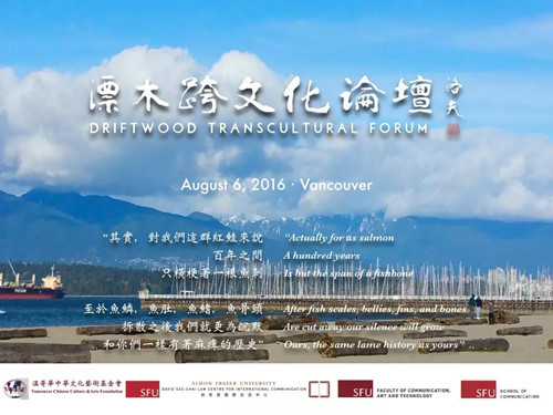 2016年8月6日,第一屆“漂木跨文化論壇”(Driftwood Transcultural Forum)在西蒙菲莎大學(xué)市中心校區(qū)舉行。這一論壇旨在秉承著名華語詩人洛夫的“天涯美學(xué)”思想,搭建促進(jìn)跨文化互動與爭鳴的國際平臺。