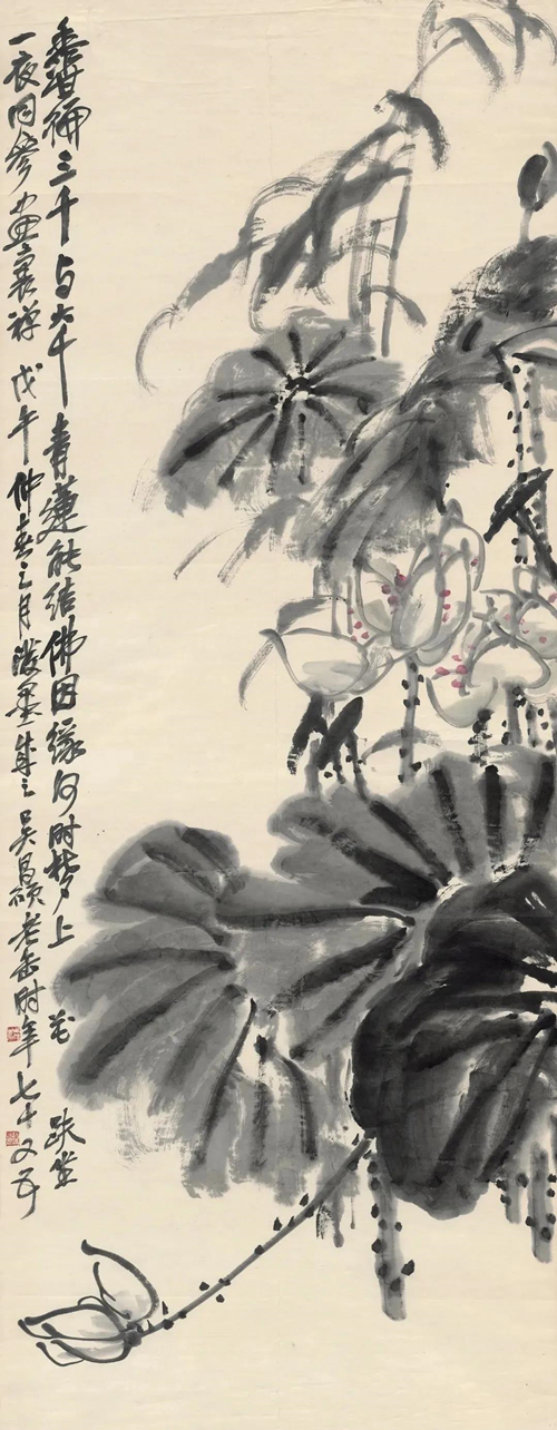 吳昌碩(1844年8月1日—1927年11月29日),嚴格意義是十九世紀和二十世紀跨時代中國畫大師。杭州西泠印社首任社長,他集“詩、書、畫、印”為一身,融金石書畫為一爐,被譽為“石鼓篆書第一人”、“文人畫最后的高峰”。在繪畫、書法、篆刻上都是旗幟性人物,在詩文、金石等方面均有很高的造詣。其古厚樸茂的大寫意作品堪稱中國畫的經典。