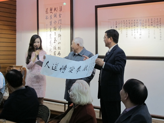 活動(dòng)在浙江經(jīng)視主持人甘泉在誦讀洛夫名篇《煙之外》中開(kāi)始,浙江大學(xué)原黨委書(shū)記、唐云藝術(shù)館名譽(yù)館長(zhǎng)張浚生、溫哥華中華文化藝術(shù)基金會(huì)主席陳建春、杭州市僑辦主任林國(guó)蛟分別致辭。洛夫先生專(zhuān)門(mén)就天涯美學(xué)文化思想和詩(shī)書(shū)創(chuàng)作作了主旨演講。中國(guó)國(guó)家畫(huà)院院委、杭州市美協(xié)主席吳山明、浙江省作家協(xié)會(huì)名譽(yù)主席黃亞洲分別講話(huà)。理論家代表浙江大學(xué)中文系教授博導(dǎo)吳曉,中國(guó)美術(shù)學(xué)院教授、浙江省美學(xué)學(xué)會(huì)首任會(huì)長(zhǎng)楊成寅,中國(guó)名家書(shū)畫(huà)館聯(lián)會(huì)秘書(shū)長(zhǎng)盧炘,中國(guó)當(dāng)代藝術(shù)協(xié)會(huì)終身名譽(yù)主席龍彼德,浙江文學(xué)會(huì)副會(huì)長(zhǎng)、錢(qián)鐘書(shū)弟子馬成生,浙江省美術(shù)評(píng)論研究會(huì)秘書(shū)長(zhǎng)范達(dá)明,杭州市文藝評(píng)論協(xié)會(huì)副主席楊宇全和浙江省詩(shī)詞與楹聯(lián)學(xué)會(huì)會(huì)長(zhǎng)祁茗田,中國(guó)財(cái)稅博物館副館長(zhǎng)呂建富,浙江社會(huì)文化研究院院長(zhǎng)應(yīng)忠良,溫哥華中華文化藝術(shù)基金會(huì)常務(wù)副主席兼秘書(shū)長(zhǎng)周岳平等嘉賓分別對(duì)洛夫的詩(shī)文書(shū)法及天涯美學(xué)思想展開(kāi)了深入的研討。洛夫先生專(zhuān)門(mén)為浙江省紅十字會(huì)題寫(xiě)了“人道 博愛(ài) 奉獻(xiàn)”, 浙江省紅十字會(huì)專(zhuān)職副會(huì)長(zhǎng)高翔接受并為洛老頒發(fā)了榮譽(yù)證書(shū)和功德榜。期間屠丹紅、張媛、范蕾、龔偉亮、舒羽誦詠了洛夫詩(shī)歌。參加活動(dòng)的還有浙江省書(shū)法家協(xié)會(huì)名譽(yù)主席朱關(guān)田,浙江省古籍出版社社長(zhǎng)壽勤澤,杭州市上城區(qū)委宣傳部副部長(zhǎng)、文創(chuàng)辦主任肖斌,溫哥華中華文化藝術(shù)基金會(huì)副主席胡德林,純真年代書(shū)吧女主人朱錦繡,收藏家施憲,涵文軒主楊文煥等嘉賓參與了活動(dòng)。會(huì)議最后由唐云藝術(shù)館館長(zhǎng)張帆總結(jié)發(fā)言。