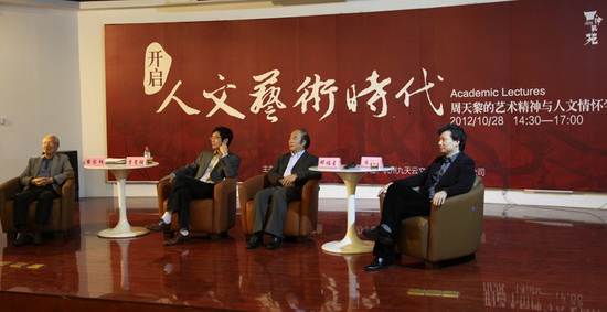 與會(huì)專家學(xué)者分折指出,周天黎先生在東西方藝術(shù)的融合上,取得了可喜的成就,其獨(dú)特的筆墨色彩的技法和豐富的思想內(nèi)涵,被權(quán)威專家評(píng)價(jià)具有“人文與學(xué)術(shù)的雙重價(jià)值,因而使她成為當(dāng)代中國(guó)最重要的藝術(shù)家和藝術(shù)思想家之一”。演講者和與會(huì)者互動(dòng)發(fā)言,對(duì)周天黎:“普世意義上的人道主義和理想主義、人文精神本身就是藝術(shù)領(lǐng)域張力的重要部分,是專業(yè)邊界以內(nèi)的歸屬,是藝術(shù)價(jià)值之所在,甚至是藝術(shù)家之所以為藝術(shù)家的藝術(shù)之魂。懷有任何獨(dú)特生命狀態(tài)和精神底蘊(yùn)的藝術(shù)家,包括汪洋恣肆天馬行空式的追求,包括所有高度個(gè)性化的藝術(shù)思想、藝術(shù)實(shí)踐、藝術(shù)風(fēng)格、藝術(shù)技巧、藝術(shù)創(chuàng)新、藝術(shù)批評(píng)、藝術(shù)研究、藝術(shù)遺世意義的宏觀和微觀的思想維度與價(jià)值,都可以放到這樣的價(jià)值體系中加以衡量?!钡娜宋乃囆g(shù)思想,進(jìn)行了學(xué)術(shù)意義上的分析和討論。一些專家學(xué)者還指出,周天黎深入中國(guó)傳統(tǒng)繪畫藝術(shù),又能過大膽地從傳統(tǒng)繪畫藝術(shù)中反叛出來,把一些西方繪畫中的圖式結(jié)構(gòu)以視覺的內(nèi)在轉(zhuǎn)換,進(jìn)行極具個(gè)性化的畫面構(gòu)成,藝術(shù)風(fēng)格上獨(dú)創(chuàng)一格,也為21世紀(jì)中國(guó)繪畫藝術(shù)的向前發(fā)展,開辟了新的路徑,開啟了人文藝術(shù)新時(shí)代。