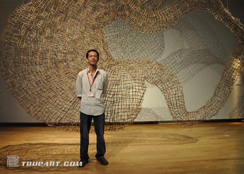 此次展覽在亞洲藝術(shù)畫廊舉行,共分為三個展區(qū)。參展的作品有《佛2》(Buddha 2 2009),該作品為透雕的佛像軀干,下半身未予雕琢,松散的藤條自然垂下。該佛像深刻反映了柬埔寨三十年前的社會狀況:柬埔寨是歷史悠久的小乘佛教之國,然而在紅色高棉時期(1975-79),其佛教信仰受到了嚴(yán)峻的考驗。在那段苦痛的歲月里,佛教遭到褻瀆,甚至被官方取締。而這也成為高棉社會瓦解的原因。這尊不完整的佛像雕塑再一次喚醒了人們對那段歲月的記憶。同時參展的還有索普習(xí)普?皮的近期作品《喇叭花》(Morning Glory 2011),這件大規(guī)模的藝術(shù)杰作承載了一段柬埔寨眾多勞動力紛紛種植滋補(bǔ)品—牽?;ǖ挠洃?。第三件作品,臘塔納基里谷滴灌(Ratanakiri Valley Drip 2012),有著更為嚴(yán)肅的主題。它是對視野,風(fēng)景和大地的抒情式研究,喚起了人們對柬埔寨風(fēng)光的美好想象。