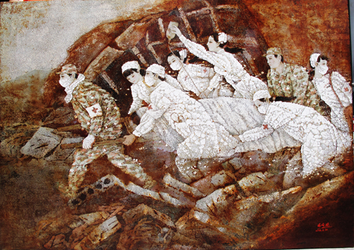 2008年,四川汶川發(fā)生大地震,舉國上下共抗國難,涌現(xiàn)出無數(shù)感人至深的英雄人物。通過電視,這些英雄事跡無時無刻不在感動著人們,也撞擊著楊老師的心扉。2009年,反映軍民齊心共抗災(zāi)難的作品《天使》入選了第十一屆全國美術(shù)作品展。