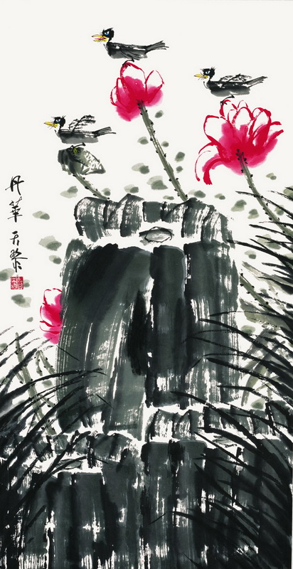 百年西泠印社,凝鑄了中國最有重量的傳統(tǒng)人文精神。2012年10月28日,西泠藝苑舉辦“開啟人文藝術(shù)時代——周天黎人文藝術(shù)學(xué)術(shù)講座”。西泠印社負(fù)責(zé)人代表西泠印社致辭中論證:“周天黎的突出,還表現(xiàn)在她藝術(shù)表達的強度。正是她深厚的思想底蘊和人文關(guān)懷,賦予了她的畫作沉郁博大的藝術(shù)氣質(zhì),給予觀眾強烈的沖擊力和感染力。她的作品,可以視作藝術(shù)家對長期以來精神苦旅的獻祭、對郁積于心的苦難體驗的釋放。看她的畫,筆墨沉郁粗放,構(gòu)圖險峻厚重,大量大塊面的分割和幾何變形,營造出一種雄奇渾厚的氣韻,在看似傳統(tǒng)的花鳥畫題材中別出新境,將水墨語言的表達強度推到了新的層次?!?
