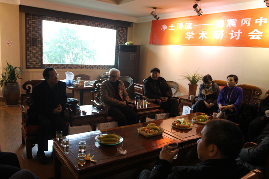 開(kāi)幕式結(jié)束后,著名理論家和文化推廣工作者齊聚一堂,對(duì)褚震岡在繼承傳統(tǒng)、原生態(tài)創(chuàng)作、突破自我等方面進(jìn)行了熱烈的討論和交流。大家對(duì)褚震岡的創(chuàng)作狀態(tài)和堅(jiān)持傳統(tǒng)給予了高度的肯定?,F(xiàn)場(chǎng)大家暢所欲談,拋磚引玉,提出為藝術(shù)市場(chǎng)打通一條極具中國(guó)本土化渠道的概念。同時(shí),期望通過(guò)對(duì)褚震岡這類原生態(tài)藝術(shù)的發(fā)掘,來(lái)更多的引起社會(huì)對(duì)于積極進(jìn)取的凈土清流般藝術(shù)家的關(guān)注和支持。參加研討會(huì)的嘉賓有:著名畫(huà)家、潘天壽基金會(huì)會(huì)長(zhǎng)古儀,中共上城區(qū)委宣傳部副部長(zhǎng)、區(qū)文創(chuàng)辦主任肖斌,江南書(shū)畫(huà)院副院長(zhǎng)顧漢昌,中國(guó)美院教授章利國(guó),中國(guó)美院教授、潘天壽紀(jì)念館原館長(zhǎng)盧炘,中國(guó)美院教授、博導(dǎo)、研究生處處長(zhǎng)毛建波,浙江美術(shù)評(píng)論研究會(huì)秘書(shū)長(zhǎng)范達(dá)明,美術(shù)報(bào)副總編潘欣信,江南書(shū)畫(huà)院院長(zhǎng)宋柏松,人文主持、策展人王明青,杭州市書(shū)畫(huà)藝術(shù)研究會(huì)副會(huì)長(zhǎng)楊宇全等。