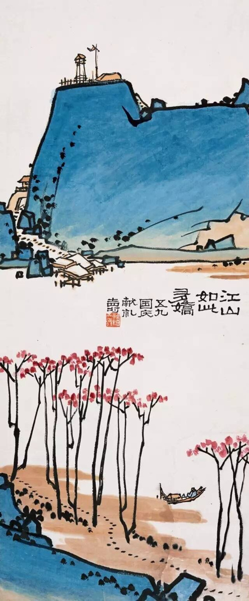 潘天壽 江山多嬌圖軸 72×30cm 1959年