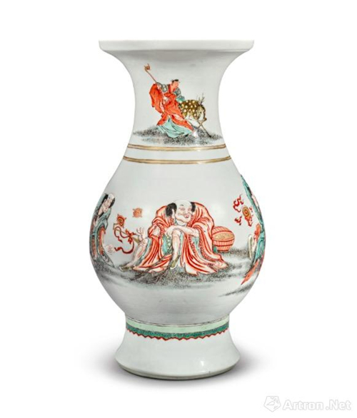 本專場的第三名是出自于清康熙的五彩浮雕四仙圖洗口尊,拍賣前估價為8-12萬美元,最終成交價為25.25萬美元。