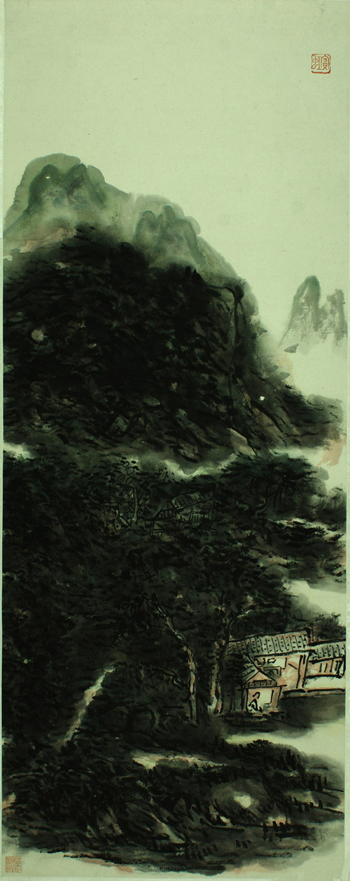 黃賓虹《黃山湯口》立軸 設(shè)色紙本 171×96cm 1955年