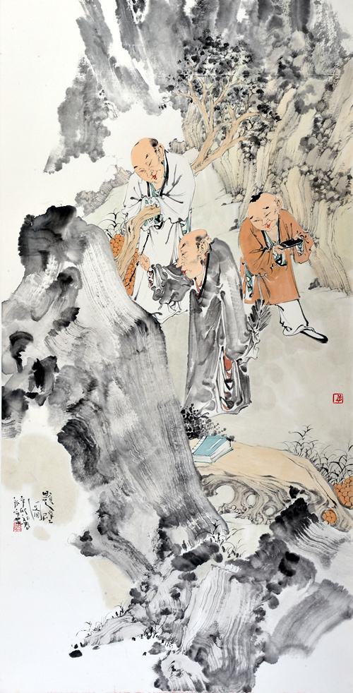 劉西潔 賞硯圖(水墨傳承) 69×138cm