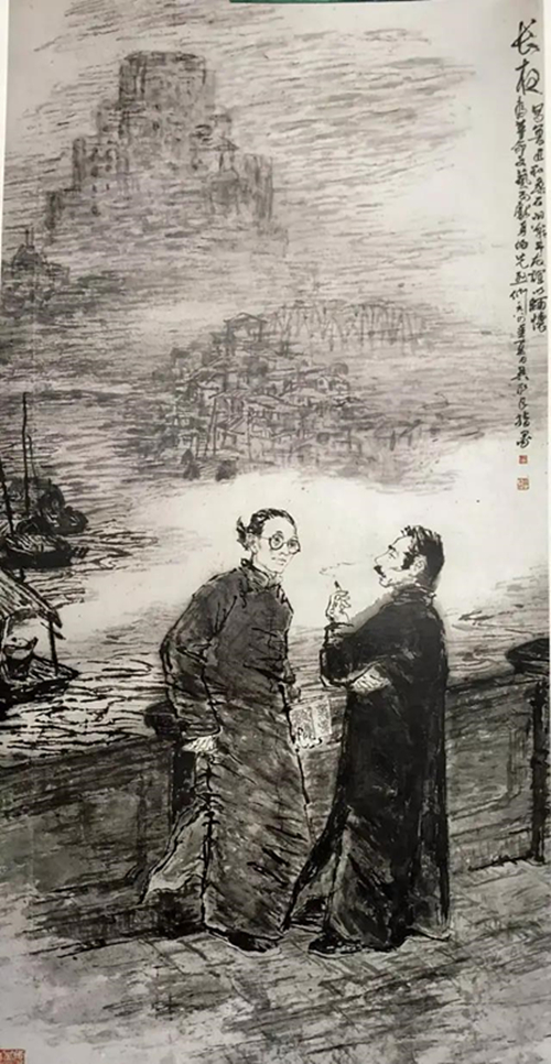 中國人物畫的最高要求是氣韻生動,不但要形似,更重要是神似,即作品要有豐富而深刻的精神內(nèi)涵。吳永良對畫中人物的描繪也都絕不僅僅停留在表面的形似上,而是努力挖掘他們的精神內(nèi)涵,表現(xiàn)對象的本質(zhì)美。他的畫面中每一條簡潔而凝練的線條,都蘊(yùn)涵著他對人對大自然的肯定與尊重。中國畫中的筆墨都是有表現(xiàn)力的,筆墨雖然是用于造型,但卻能流露出畫家作畫時的心態(tài)和藝術(shù)修養(yǎng)。