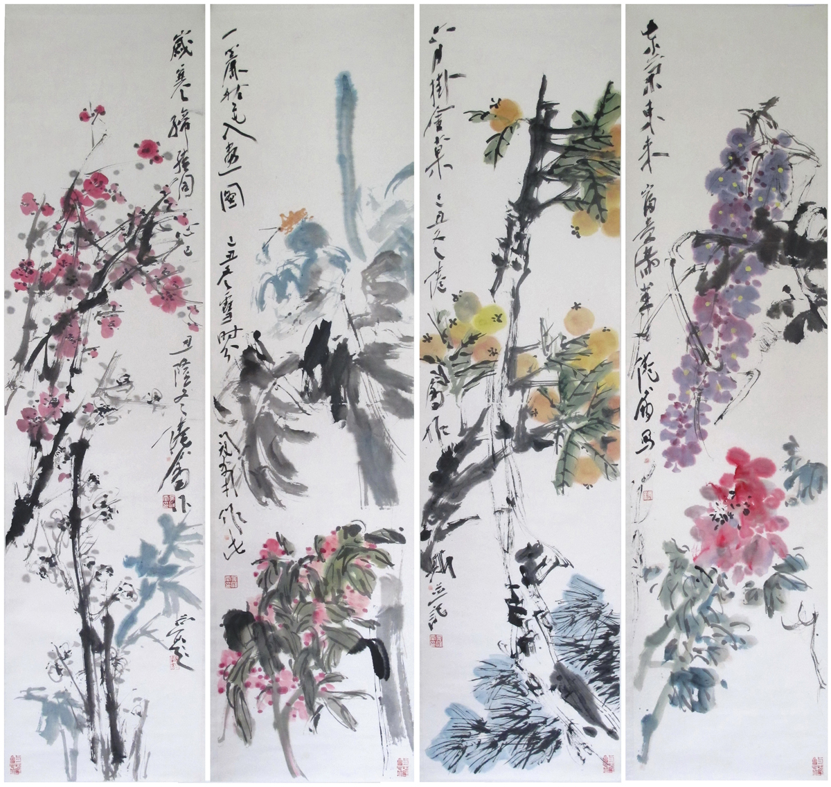 作品名: 花鳥(niǎo)四條屏(特價(jià)作品,春夏秋冬)